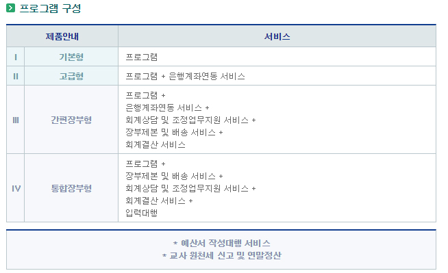 (기본장부, 간편장부, 통합장부 시스템)를 제공합니다