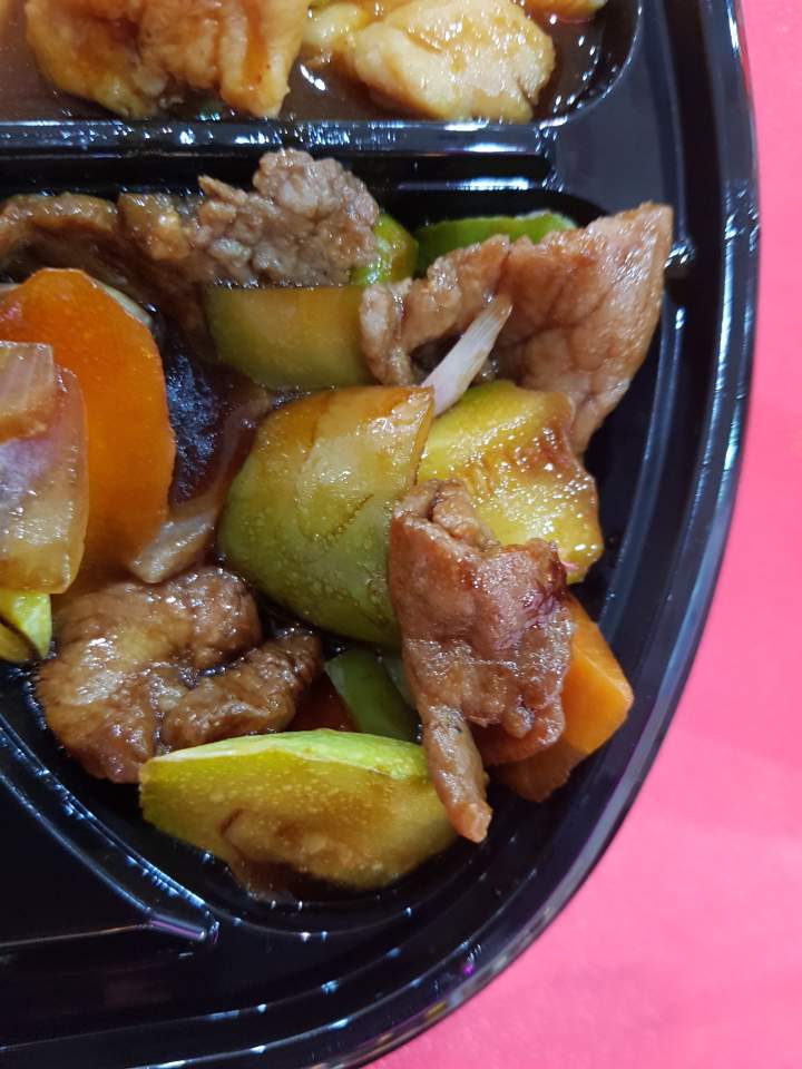 하얀 쌀밥에다가 고기와 야채를
