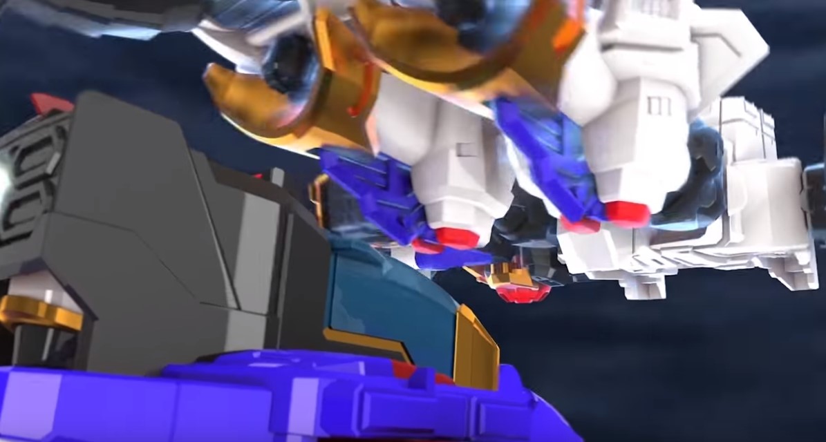 합체한 후 차탄아버지를 육지로 이동시키는 헬로카봇 제트크루저
